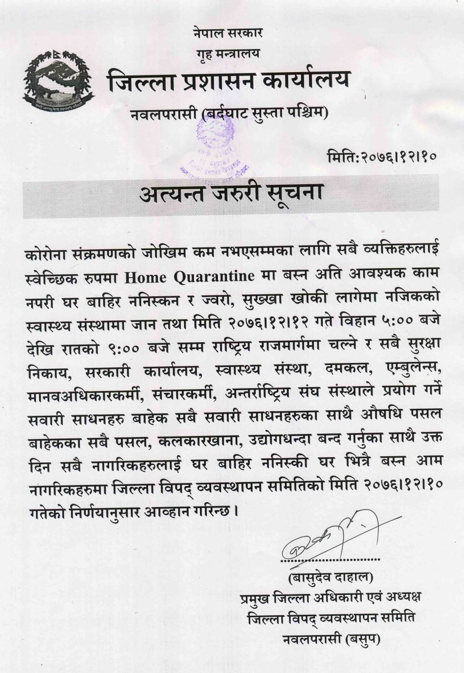 © सर्वाधिकार सुरक्षित जिल्ला प्रशासन कार्यालय, नवलपरासी (बर्दघाट सुस्ता पश्चिम)