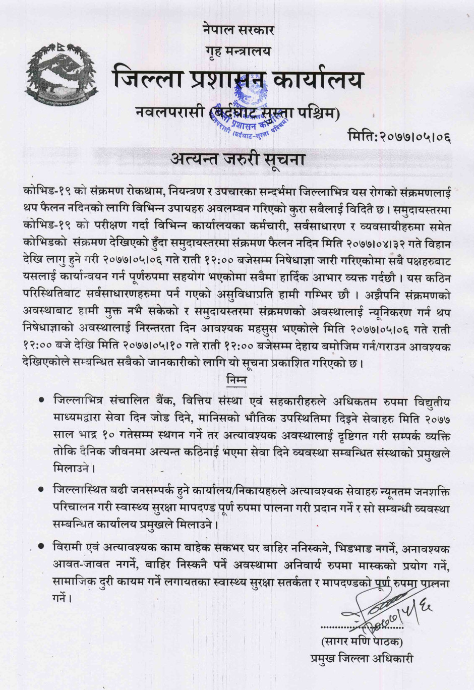 © सर्वाधिकार सुरक्षित जिल्ला प्रशासन कार्यालय, नवलपरासी (बर्दघाट सुस्ता पश्चिम)