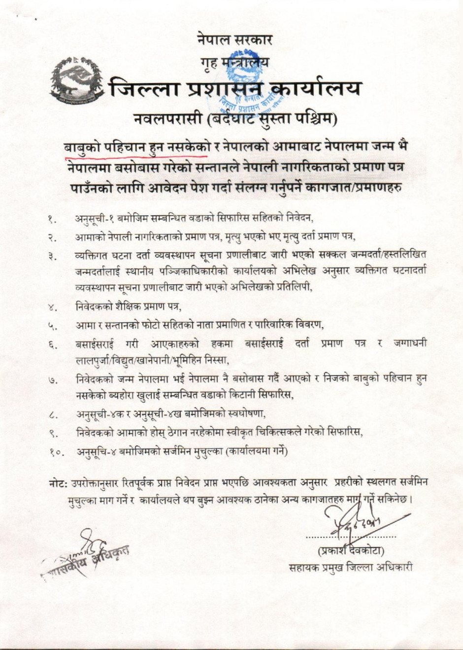 तस्बिर : बाबुको पहिचान हुन नसकेको र नेपालको आमाबाट नेपालमा जन्म भै नेपालमा बसोबास गरेको सन्तानले नेपाली नागरिकताको प्रमाण पत्र सम्बन्धमा