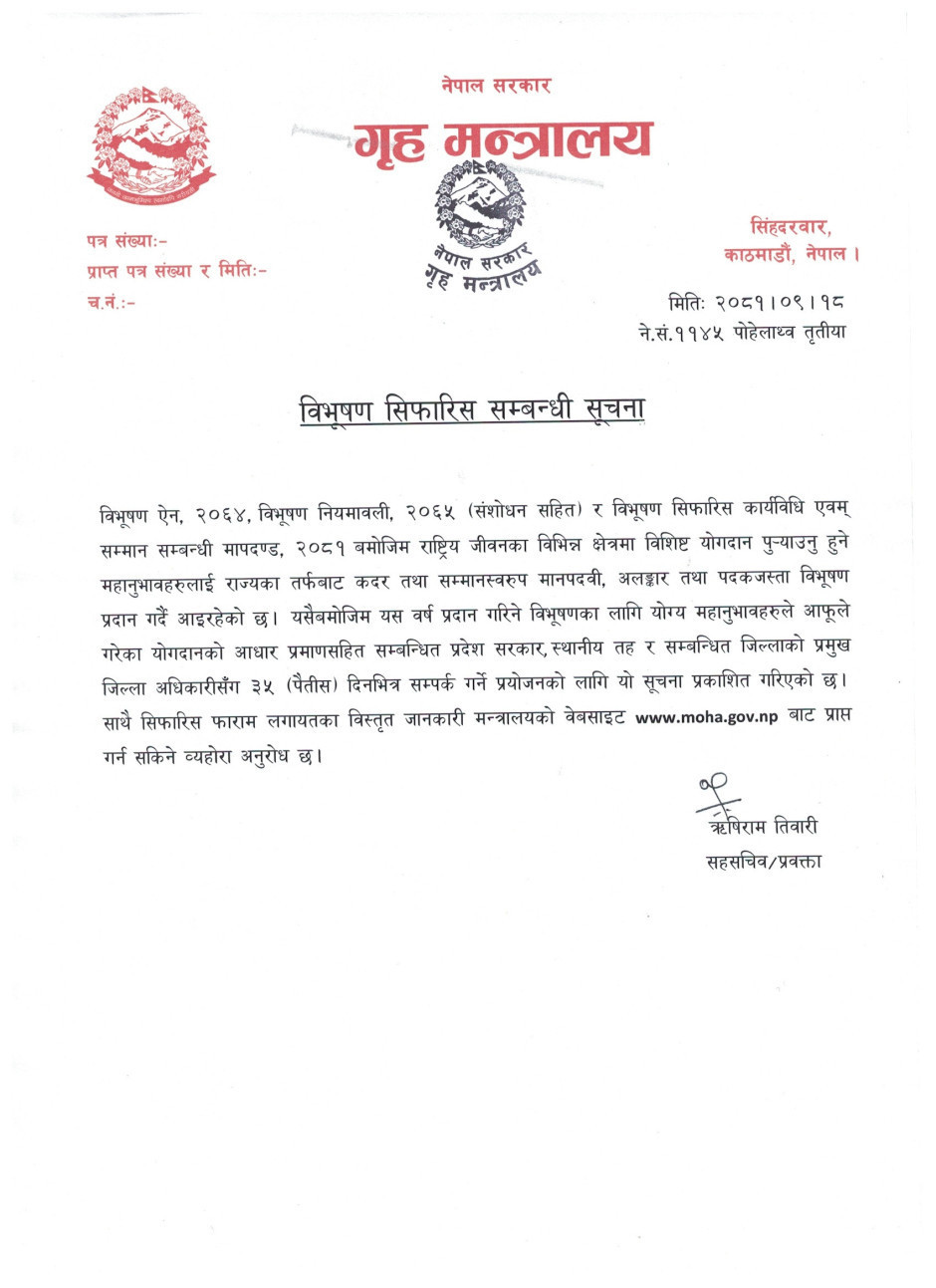 तस्बिर : बिभुषण सिफारिस सम्बन्धी सूचना