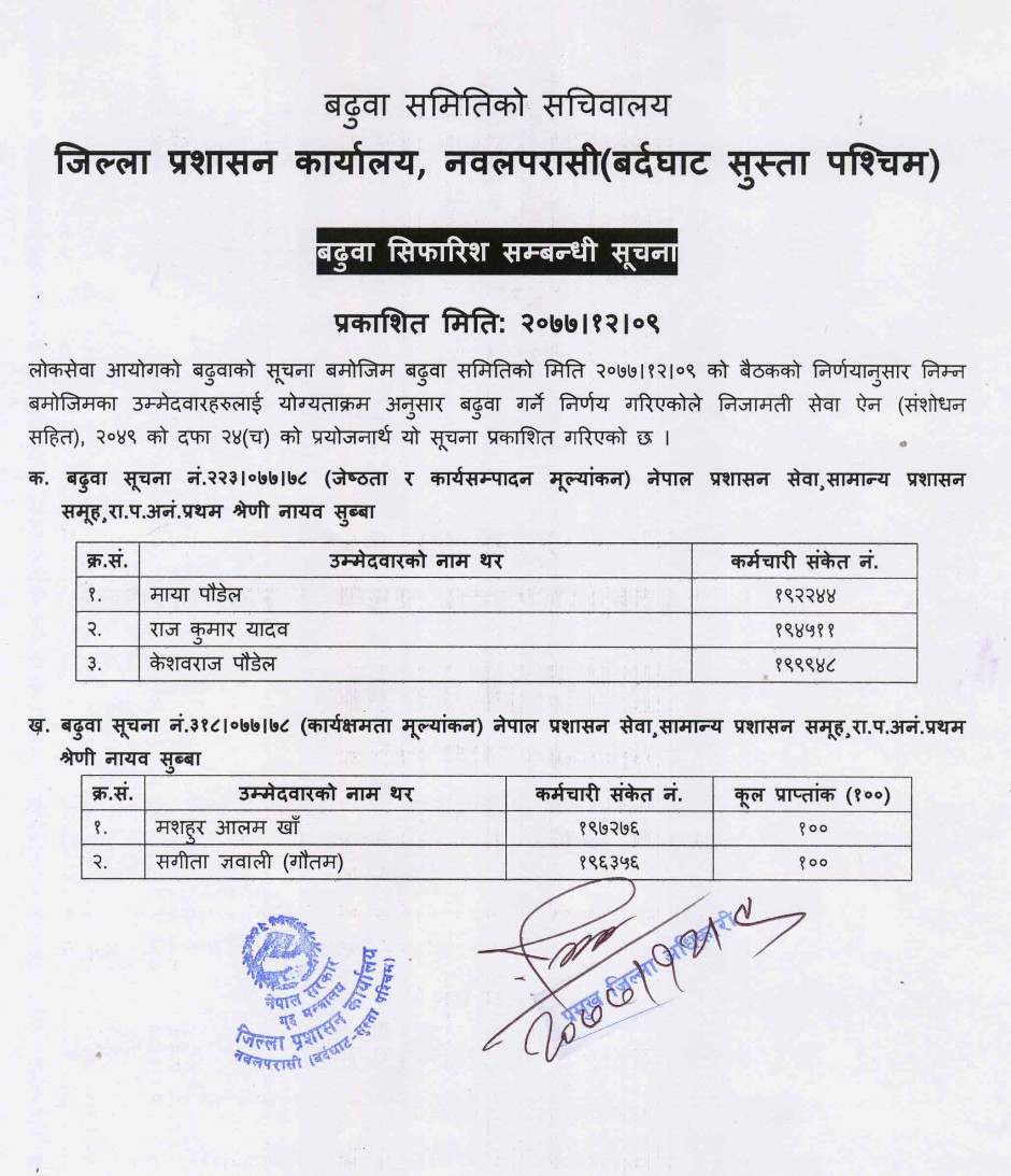 तस्बिर : बढुवा समिति सचिवालयको बढुवा सम्बन्धी सूचना