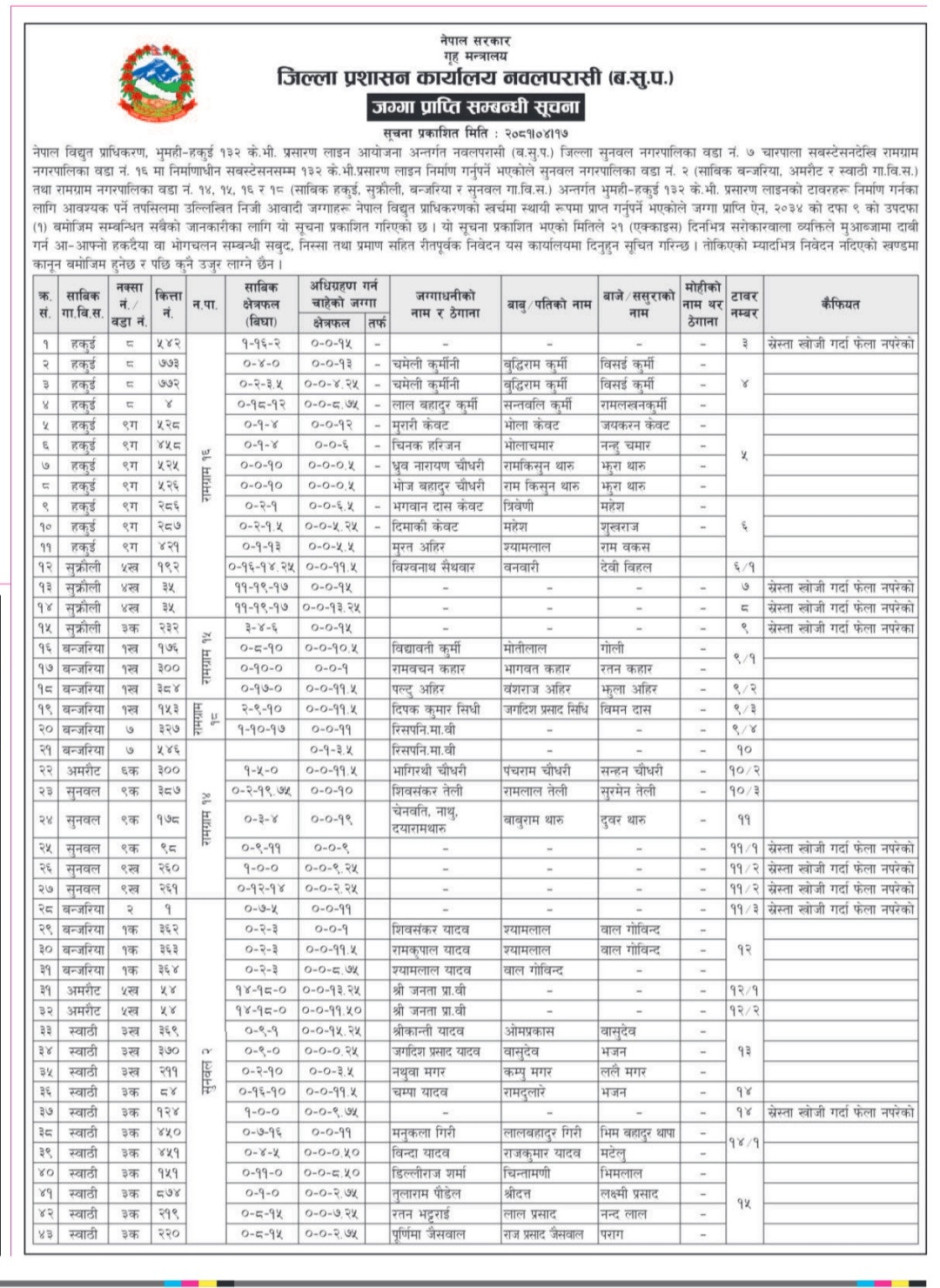 तस्बिर : भुमही-हकुई १३२ के.भी.प्रसारण लाइनकाे जग्गा प्राप्ति सम्बन्धी सूचना