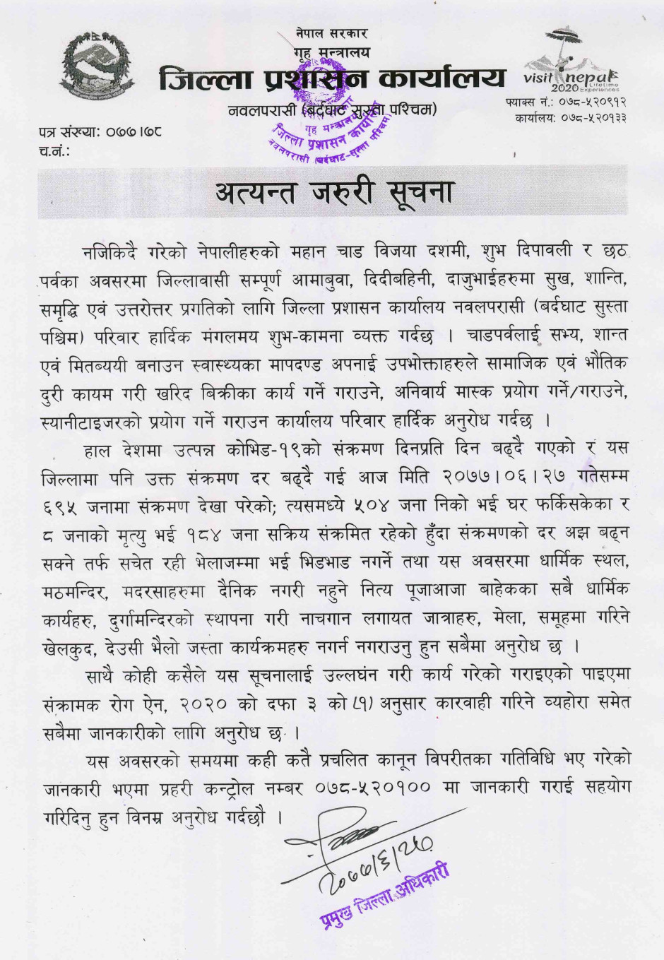 © सर्वाधिकार सुरक्षित जिल्ला प्रशासन कार्यालय, नवलपरासी (बर्दघाट सुस्ता पश्चिम) .
