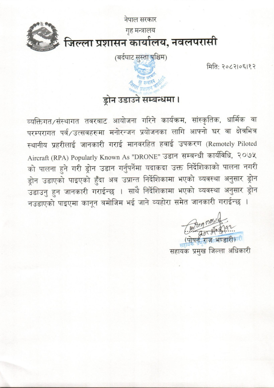 © सर्वाधिकार सुरक्षित जिल्ला प्रशासन कार्यालय, नवलपरासी (बर्दघाट सुस्ता पश्चिम) .
