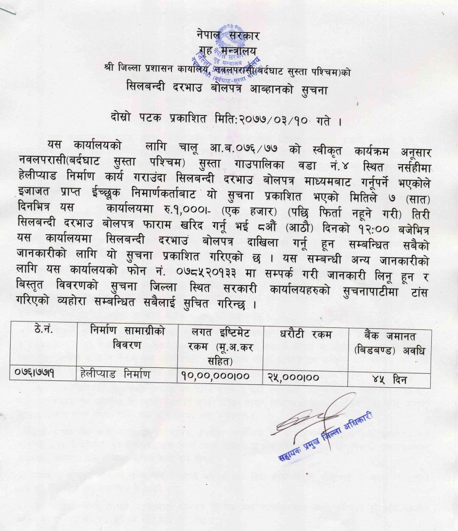 तस्बिर : हेलिप्याड निर्माण सम्बन्धी दोस्रो पटक प्रकाशित सूचना