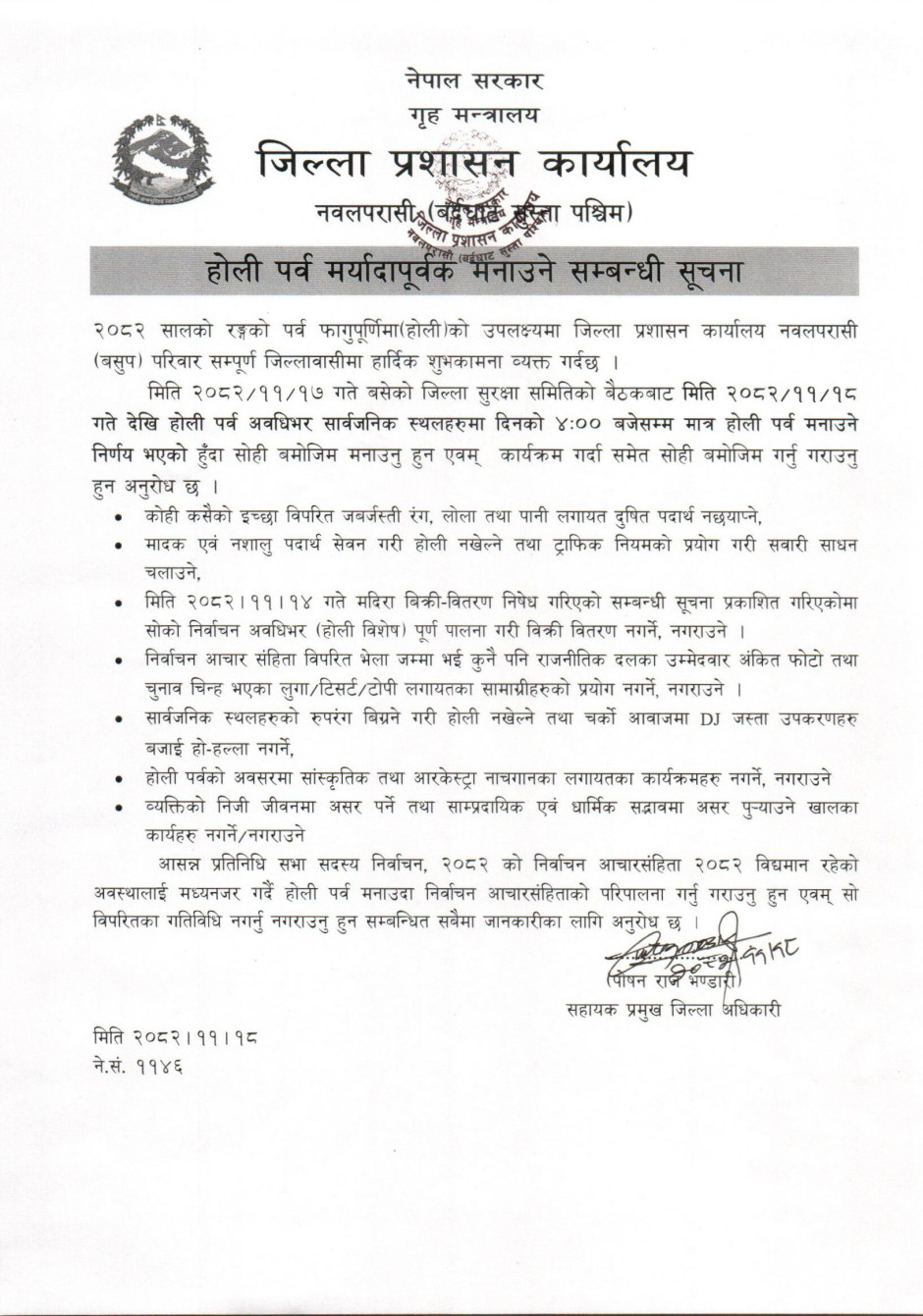 © सर्वाधिकार सुरक्षित जिल्ला प्रशासन कार्यालय, नवलपरासी (बर्दघाट सुस्ता पश्चिम) .