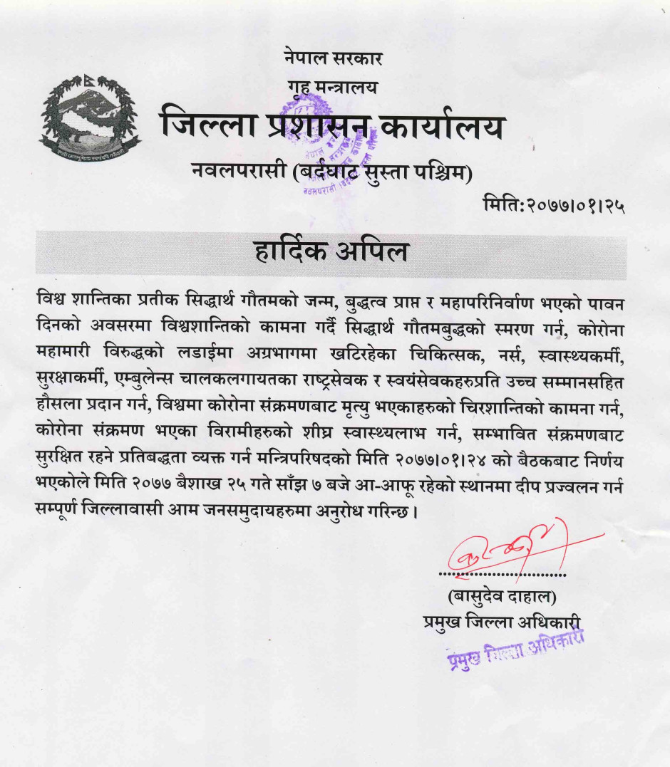 © सर्वाधिकार सुरक्षित जिल्ला प्रशासन कार्यालय, नवलपरासी (बर्दघाट सुस्ता पश्चिम)