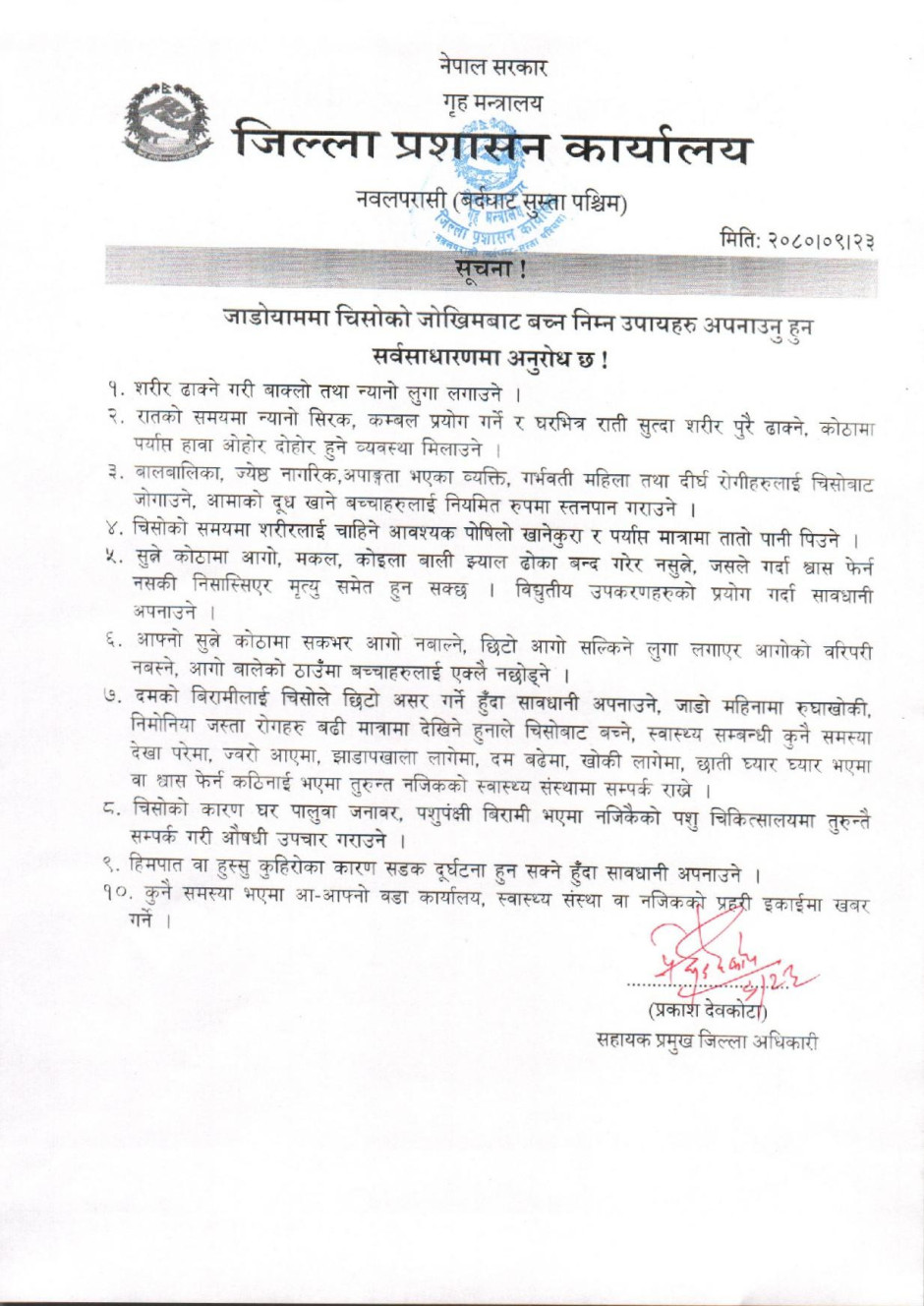 तस्बिर : जाडोयाममा चिसोको जोखिमबाट बच्न निम्न उपायहरु अपनाउनु हुन सर्वसाधारणमा अनुरोध छ !
