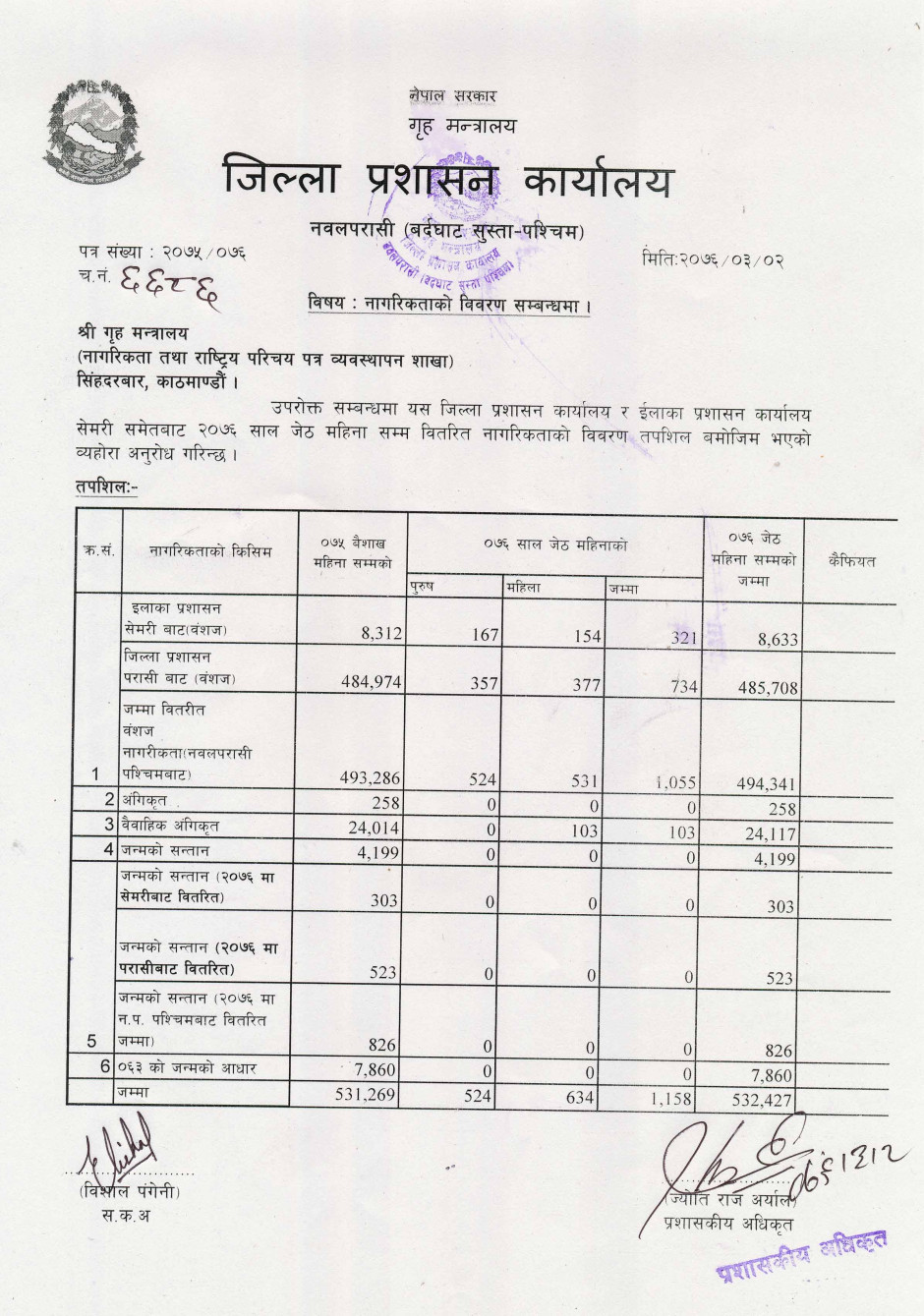 जेठ महिना २०७६ को नागरिकताको विवरण