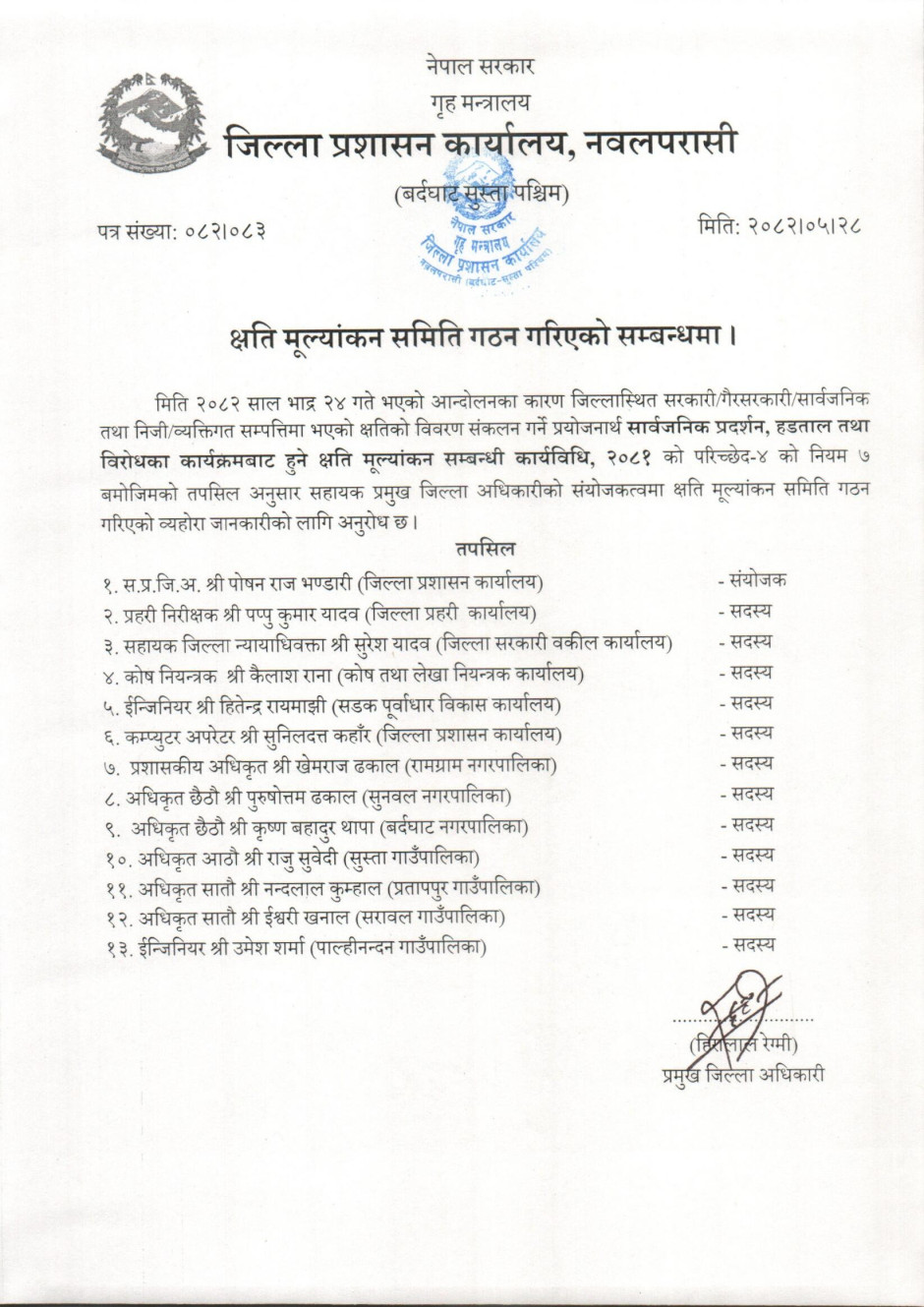 तस्बिर : क्षति मूल्यांकन समिति गठन गरिएको सम्बन्धमा
