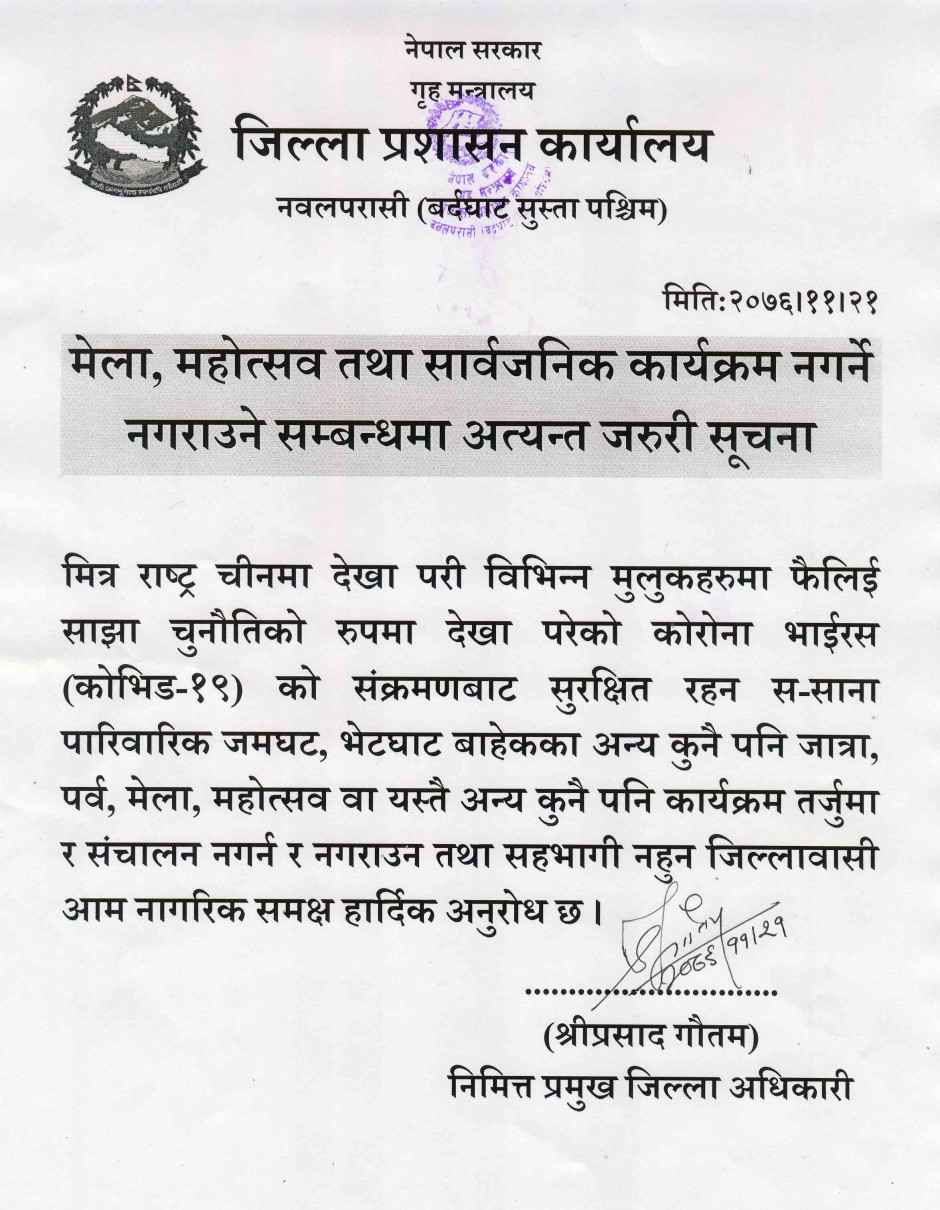 तस्बिर : मेला, महोत्सव तथा सार्वजनिक कार्यक्रम नगर्ने नगराउने सम्बन्धमा अत्यन्त जरुरी सूचना