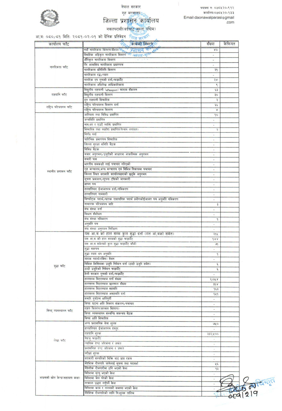 तस्बिर : मिति २०८१।०२।०१ गतेका दिन सम्पादित गरिएका कार्यको संख्यात्मक विवरण