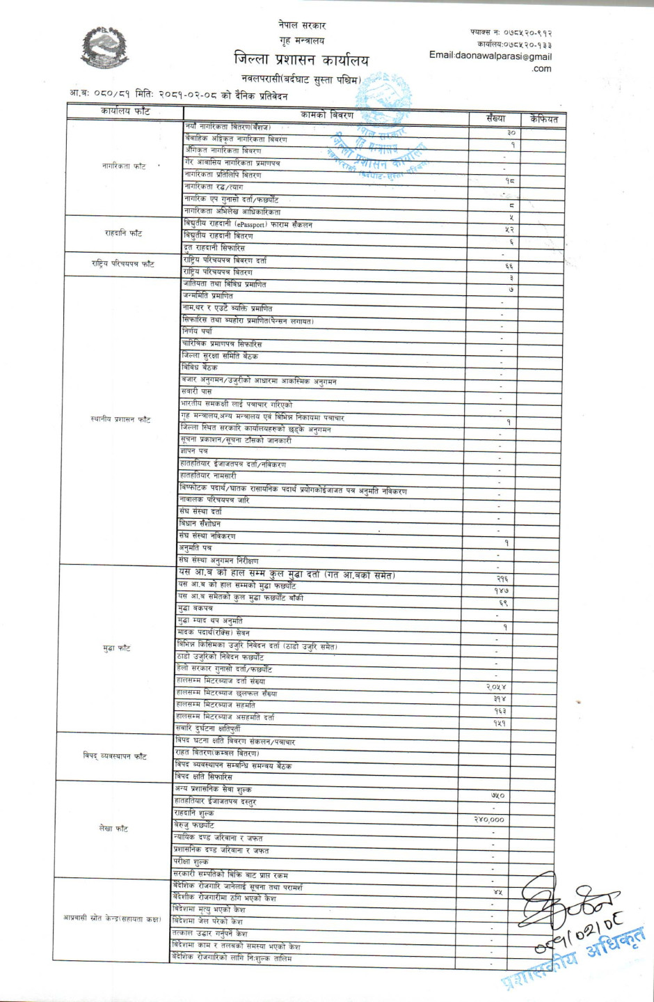 तस्बिर : मिति २०८१।०२।०८ गतेका दिन सम्पादित गरिएका कार्यको संख्यात्मक विवरण