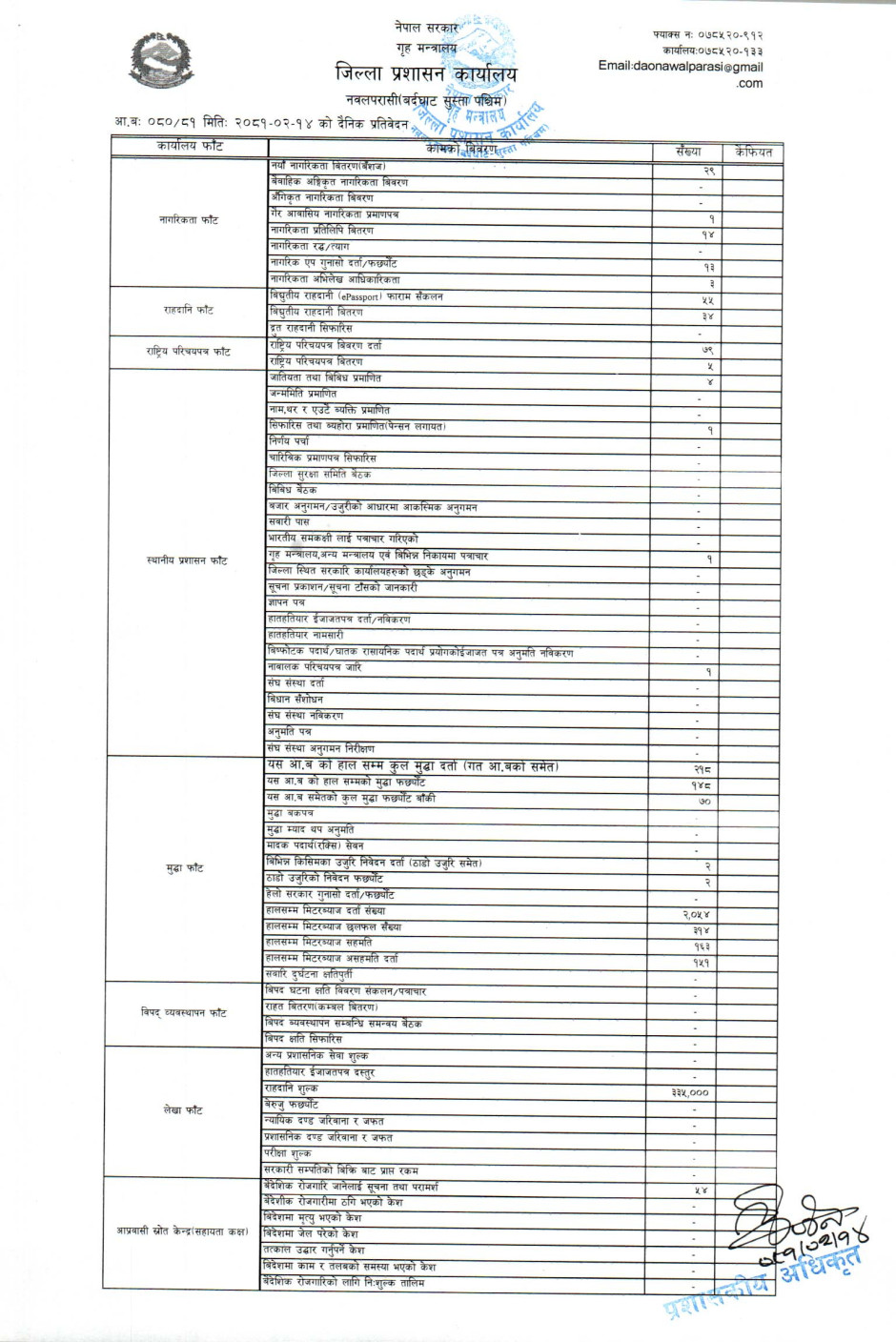तस्बिर : मिति २०८१।०२।१४ गतेका दिन सम्पादित गरिएका कार्यको संख्यात्मक विवरण