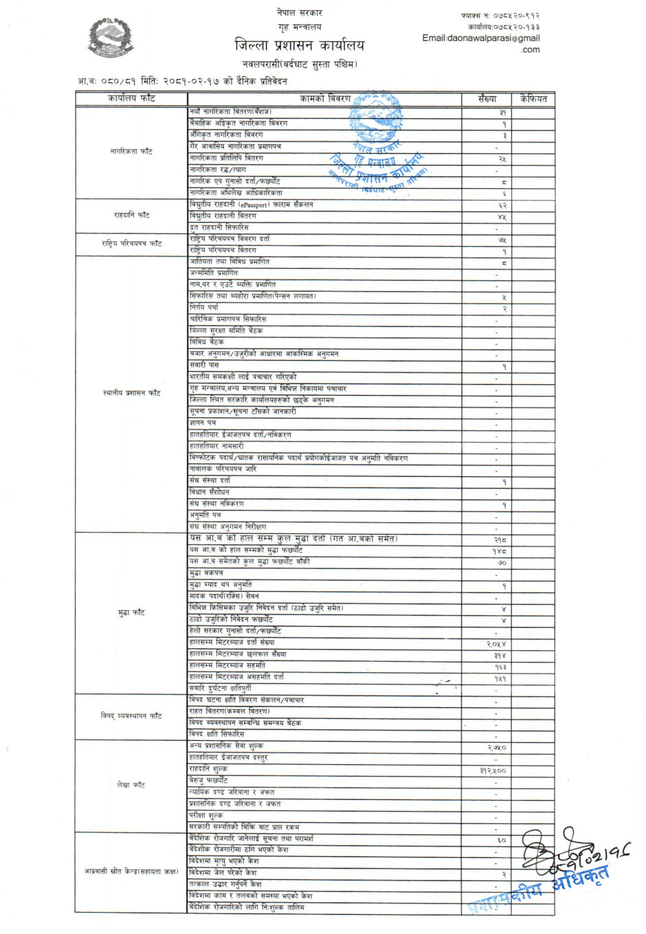 तस्बिर : मिति २०८१।०२।१७ गतेका दिन सम्पादित गरिएका कार्यको संख्यात्मक विवरण