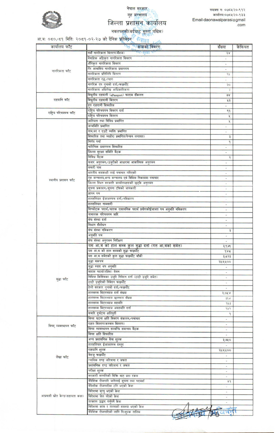 तस्बिर : मिति २०८१।०२।२७ गतेका दिन सम्पादित गरिएका कार्यको संख्यात्मक विवरण