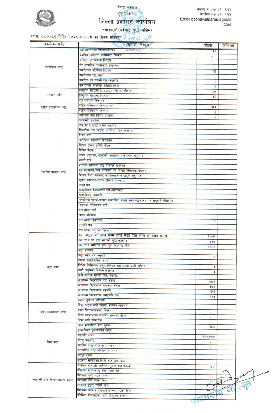 तस्बिर : मिति २०८१।०२।२८ गतेका दिन सम्पादित गरिएका कार्यको संख्यात्मक विवरण