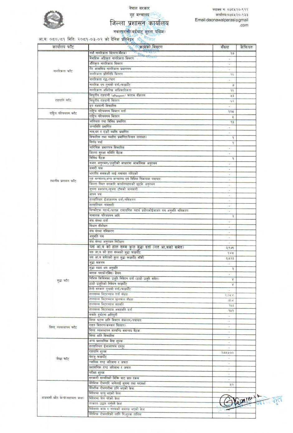 तस्बिर : मिति २०८१।०३।०२ गतेका दिन सम्पादित गरिएका कार्यको संख्यात्मक विवरण