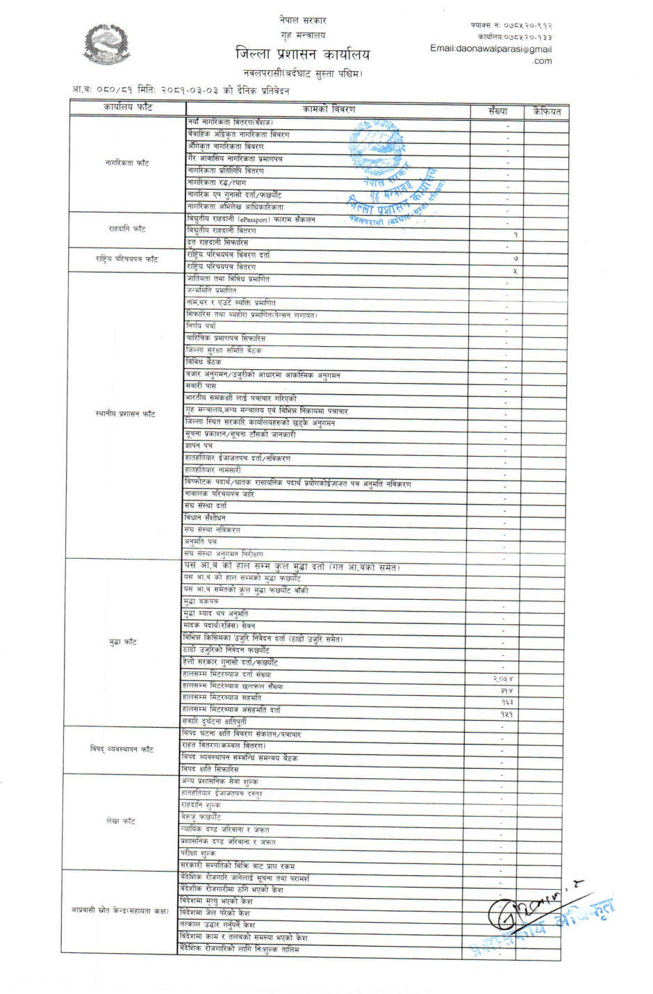 तस्बिर : मिति २०८१।०३।०३ गतेका दिन सम्पादित गरिएका कार्यको संख्यात्मक विवरण