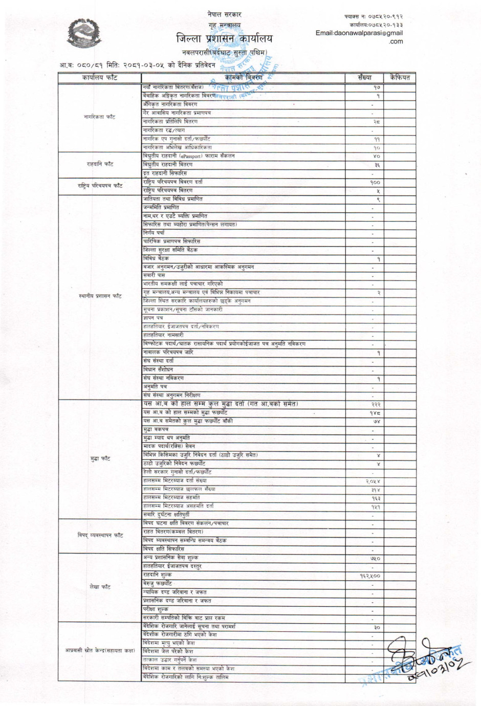 तस्बिर : मिति २०८१।०३।०५ गतेका दिन सम्पादित गरिएका कार्यको संख्यात्मक विवरण