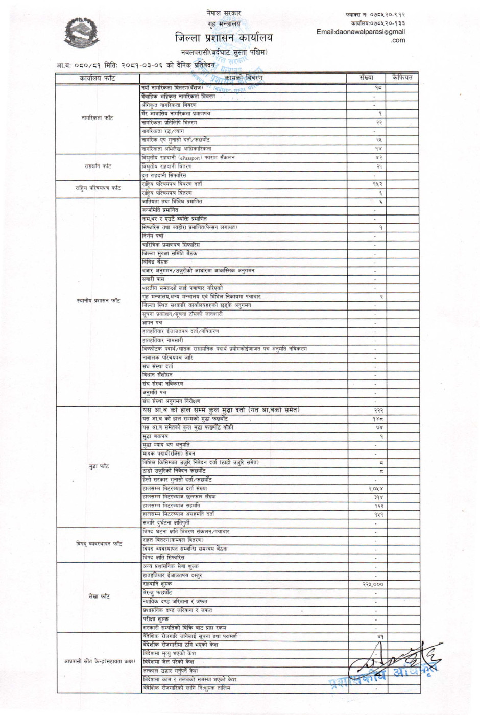 तस्बिर : मिति २०८१।०३।०६ गतेका दिन सम्पादित गरिएका कार्यको संख्यात्मक विवरण