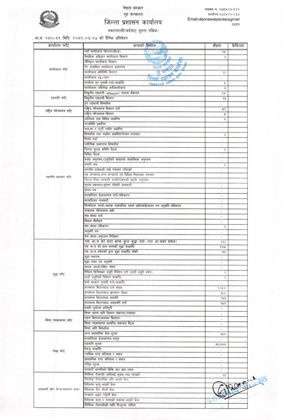 तस्बिर : मिति २०८१।०३।०७ गतेका दिन सम्पादित गरिएका कार्यको संख्यात्मक विवरण