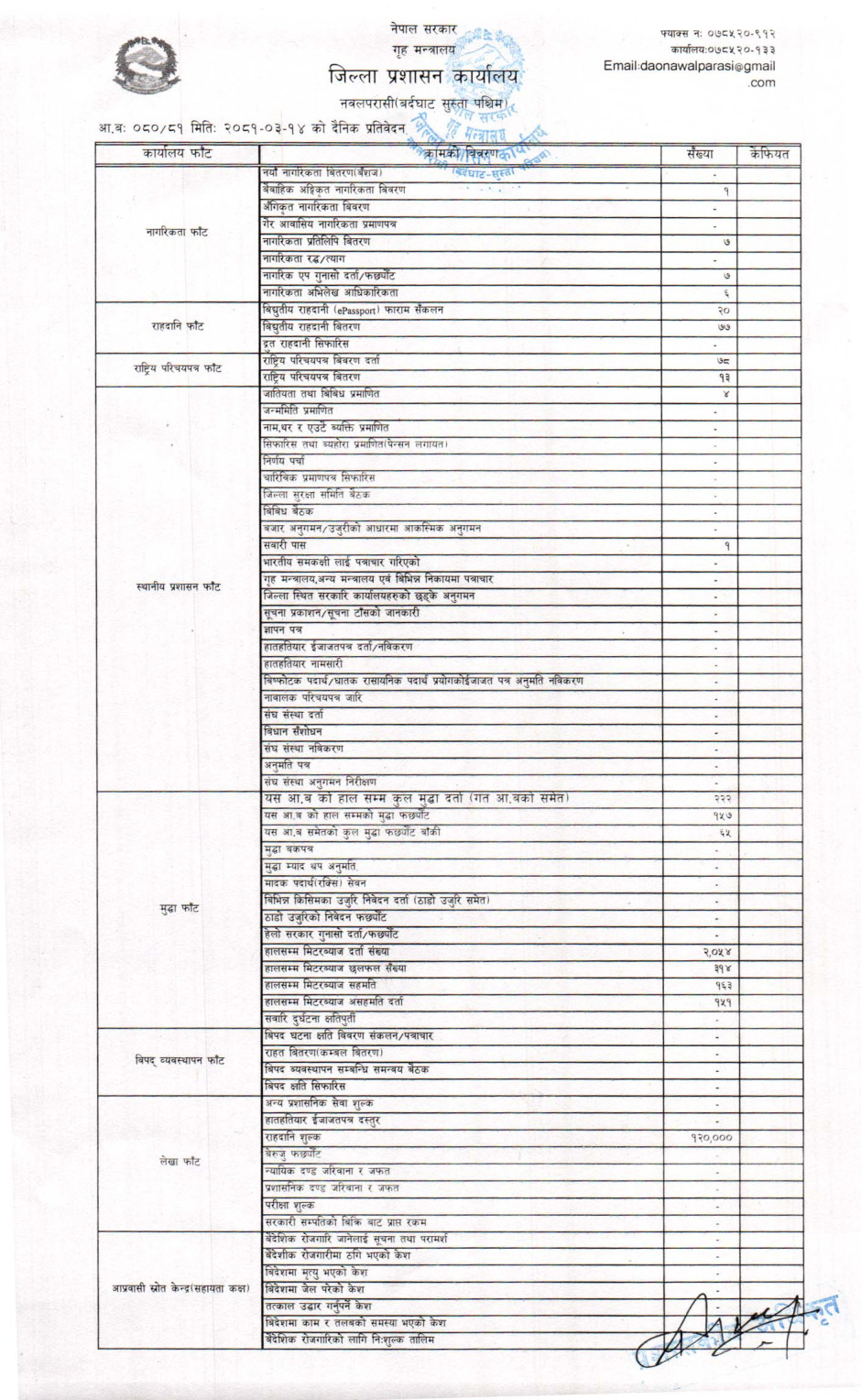तस्बिर : मिति २०८१।०३।१४ गतेका दिन सम्पादित गरिएका कार्यको संख्यात्मक विवरण