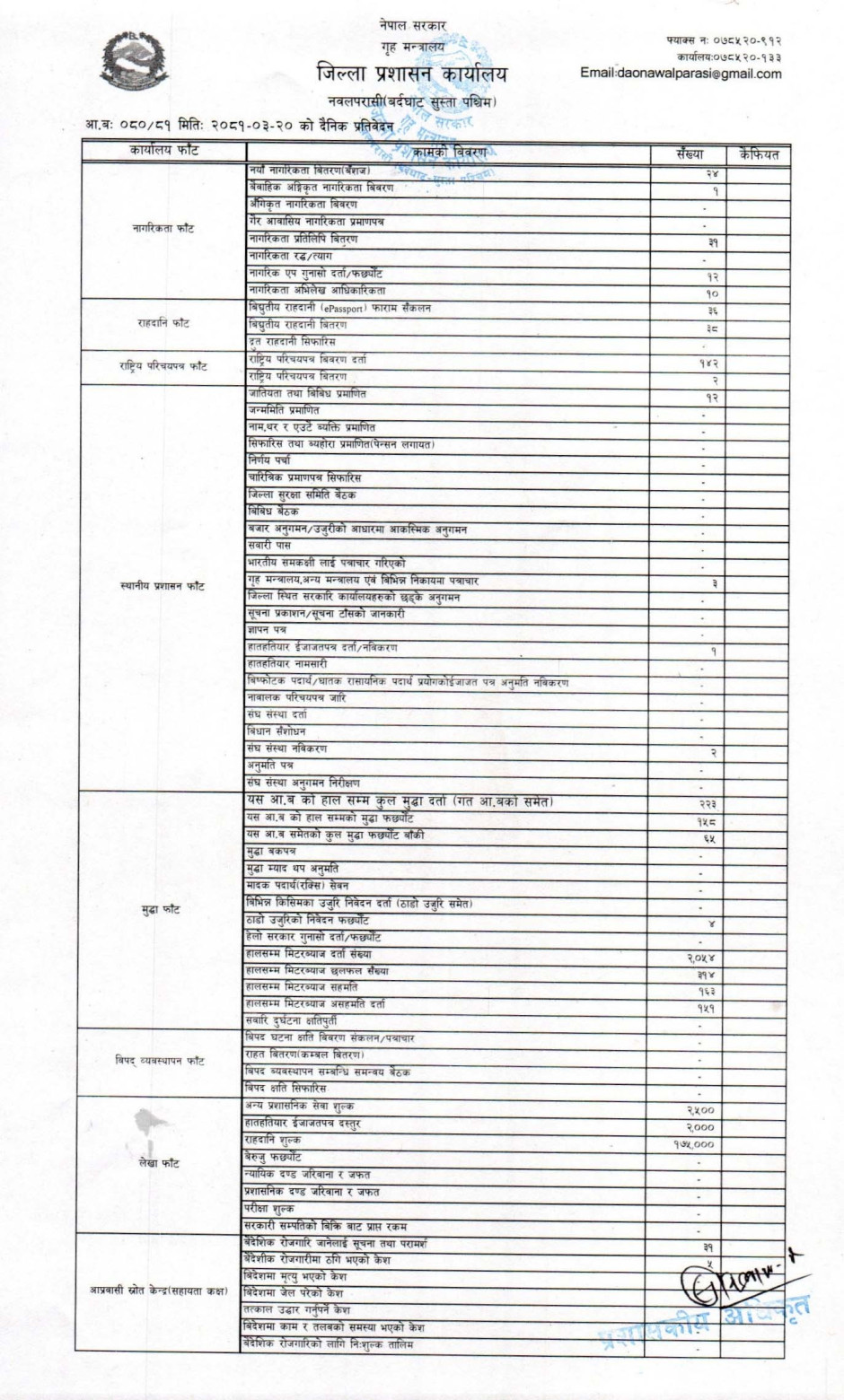 तस्बिर : मिति २०८१।०३।२० गतेका दिन सम्पादित गरिएका कार्यको संख्यात्मक विवरण