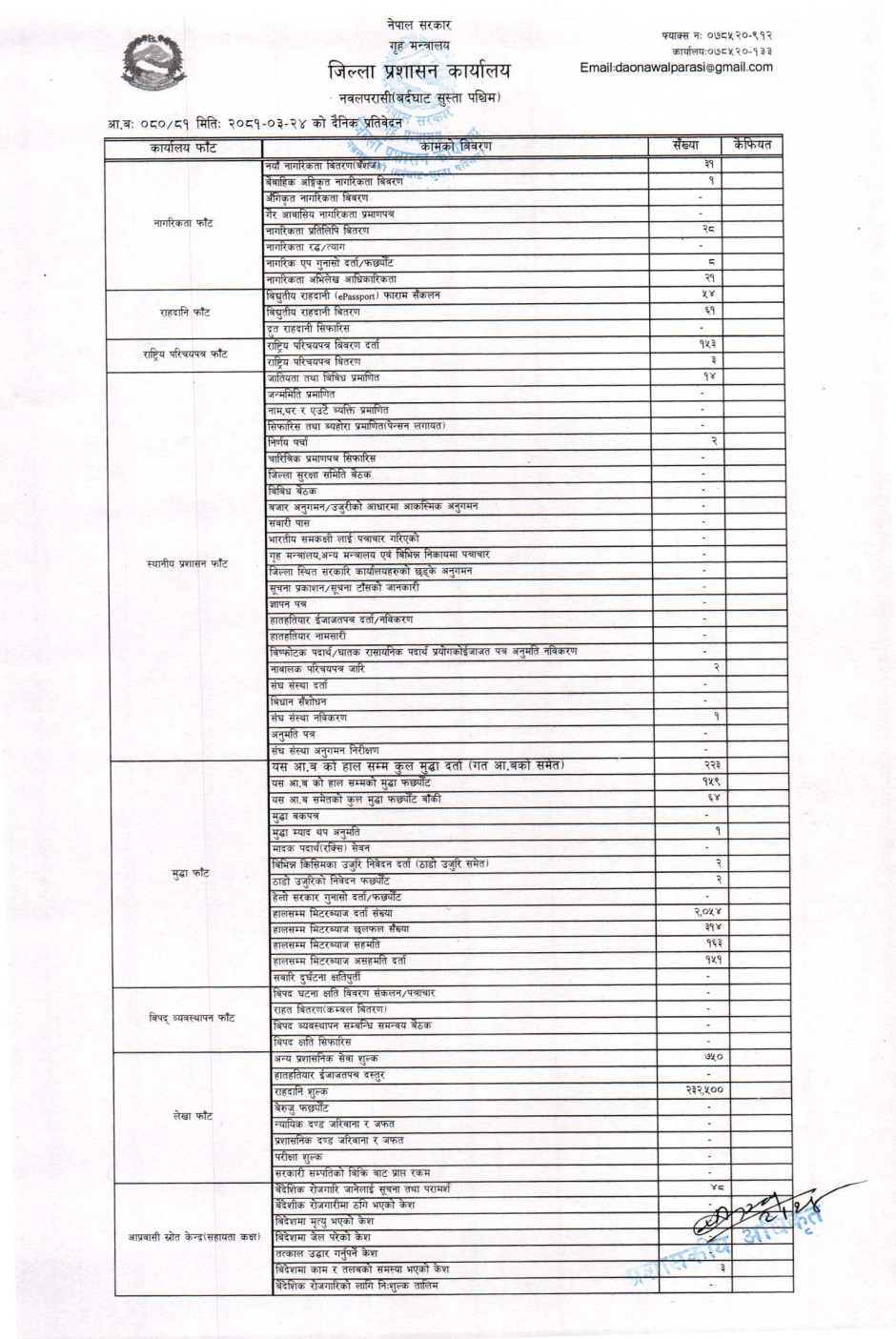 तस्बिर : मिति २०८१।०३।२४ गतेका दिन सम्पादित गरिएका कार्यको संख्यात्मक विवरण
