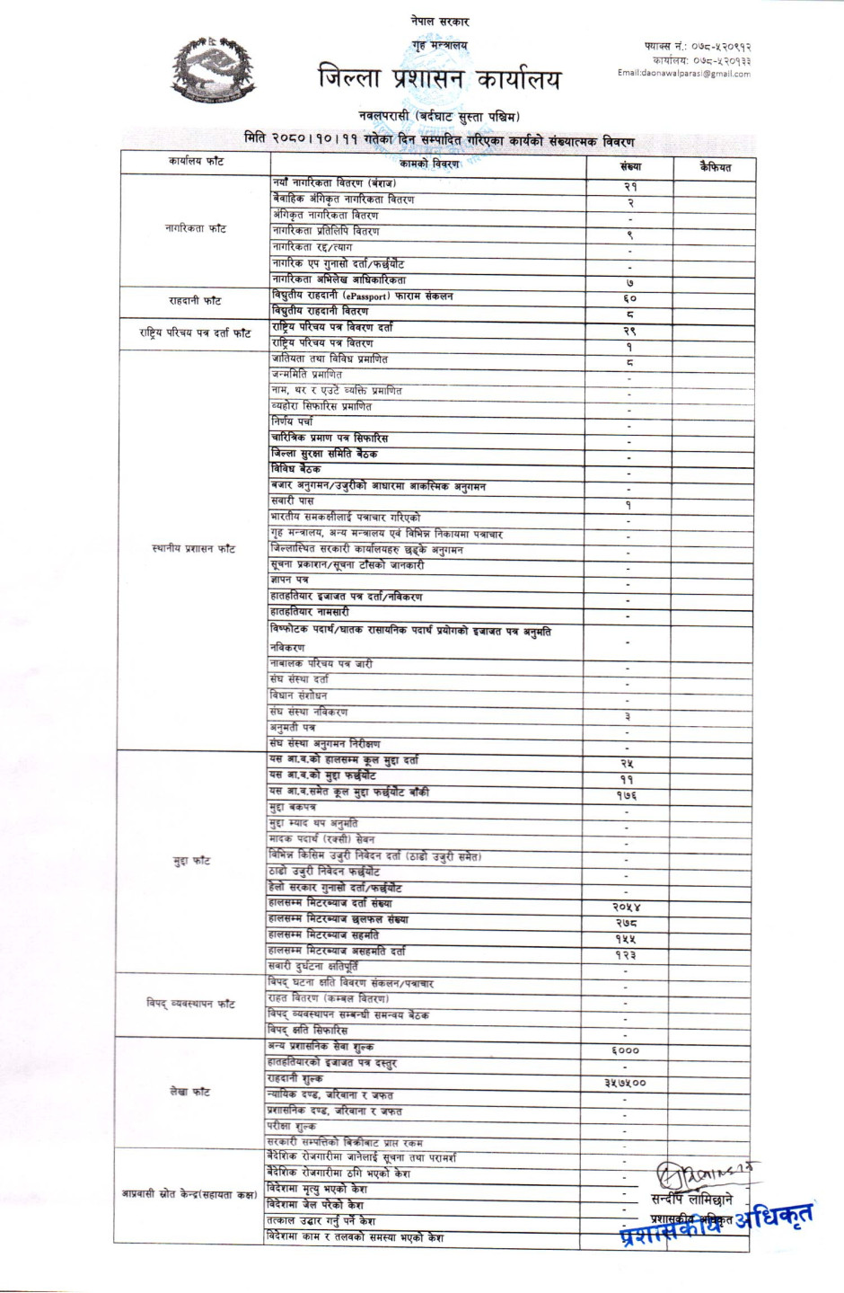 तस्बिर : मिति २०८०।१०।११ गतेका दिन सम्पादित गरिएका कार्यको संख्यात्मक विवरण