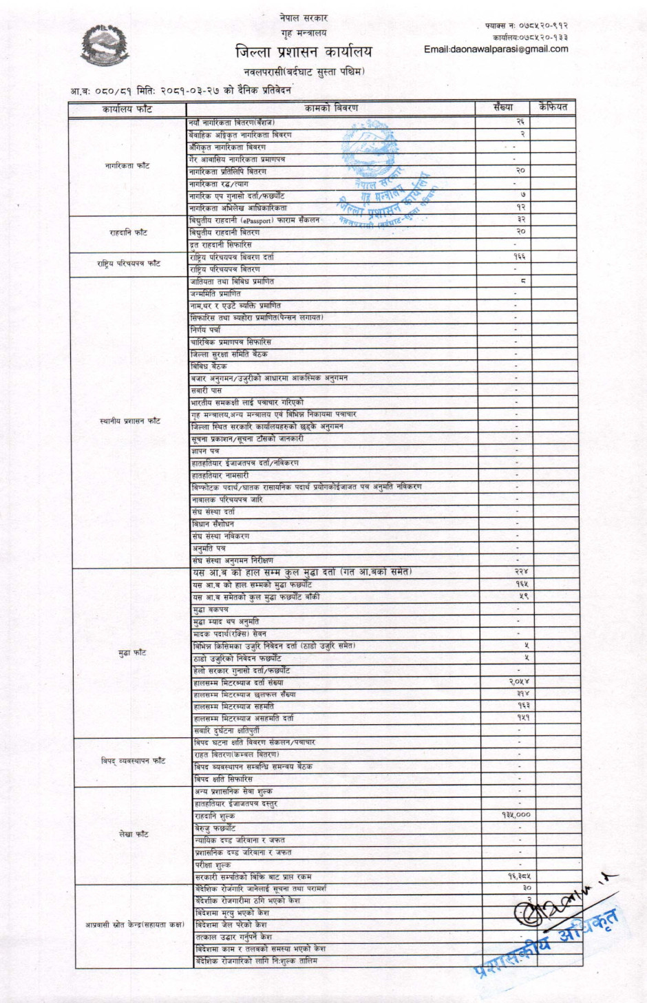 तस्बिर : मिति २०८१।०३।२७ गतेका दिन सम्पादित गरिएका कार्यको संख्यात्मक विवरण
