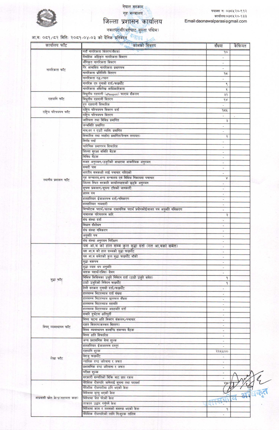 तस्बिर : मिति २०८१।०४।०३ गतेका दिन सम्पादित गरिएका कार्यको संख्यात्मक विवरण