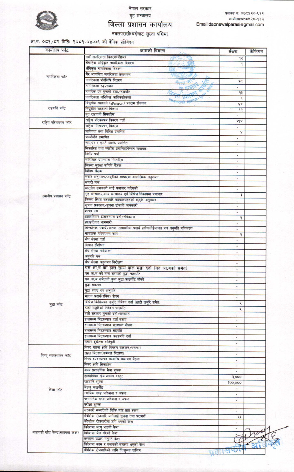 तस्बिर : मिति २०८१।०४।०६ गतेका दिन सम्पादित गरिएका कार्यको संख्यात्मक विवरण