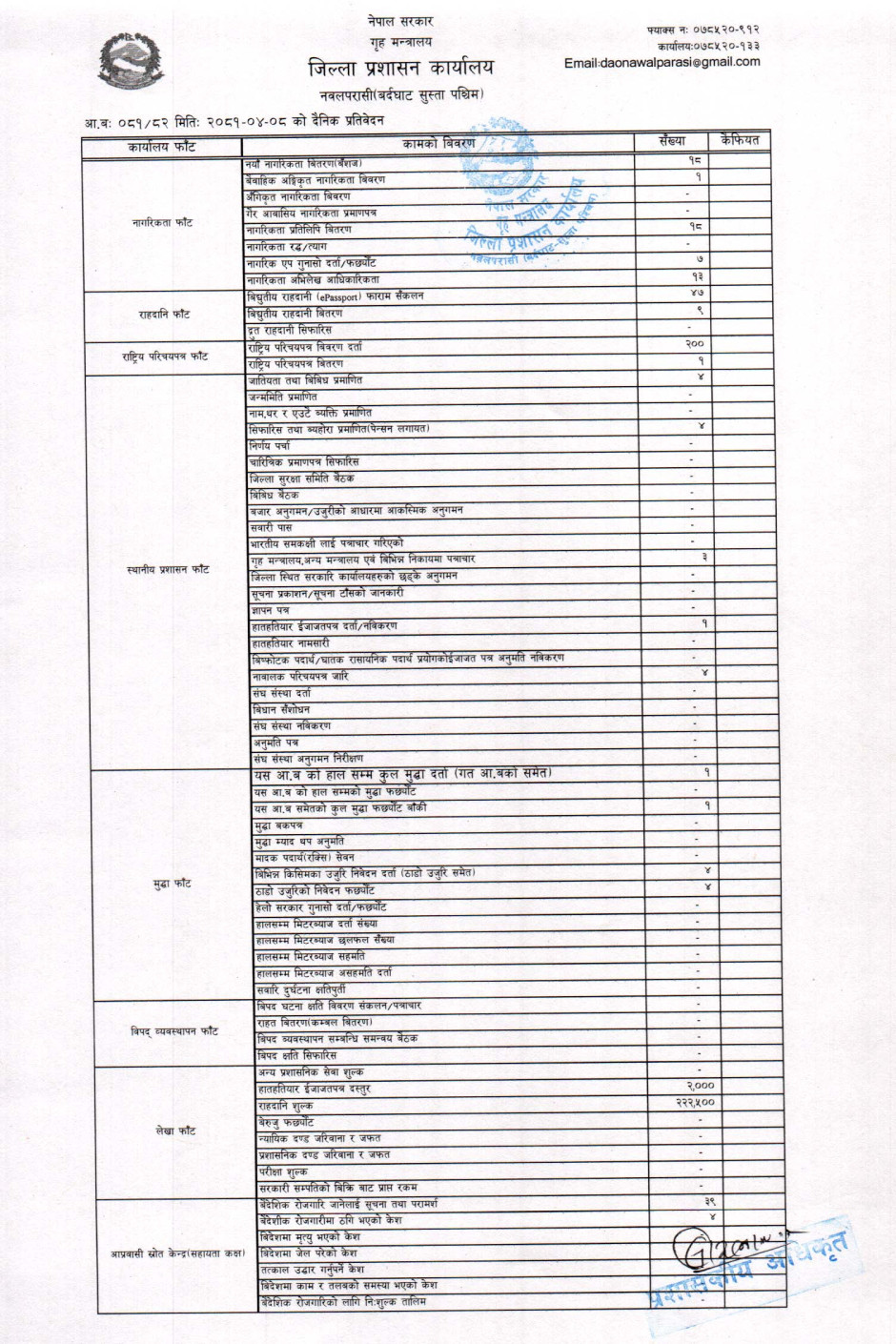 तस्बिर : मिति २०८१।०४।०८ गतेका दिन सम्पादित गरिएका कार्यको संख्यात्मक विवरण