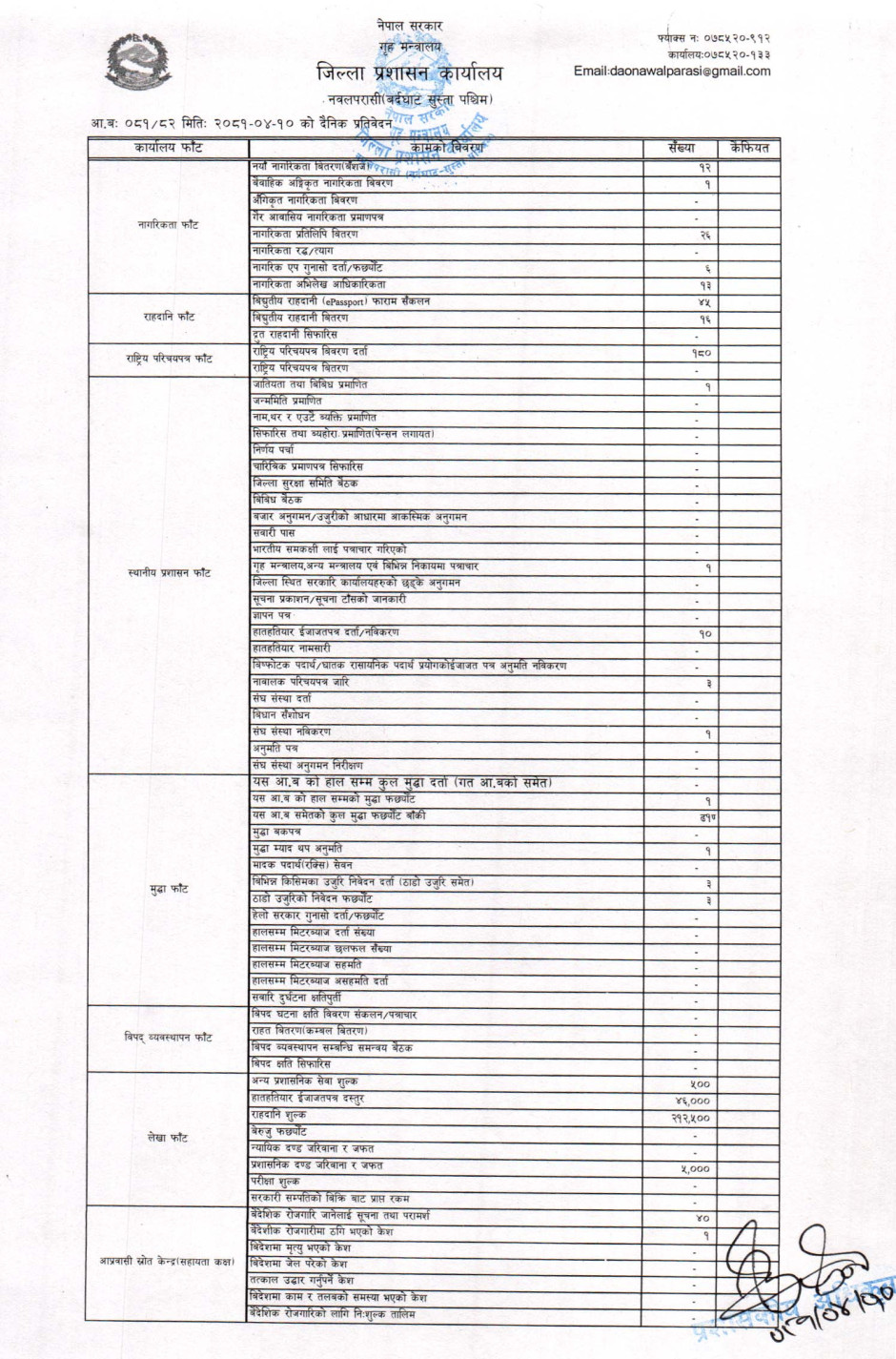 तस्बिर : मिति २०८१।०४।१० गतेका दिन सम्पादित गरिएका कार्यको संख्यात्मक विवरण