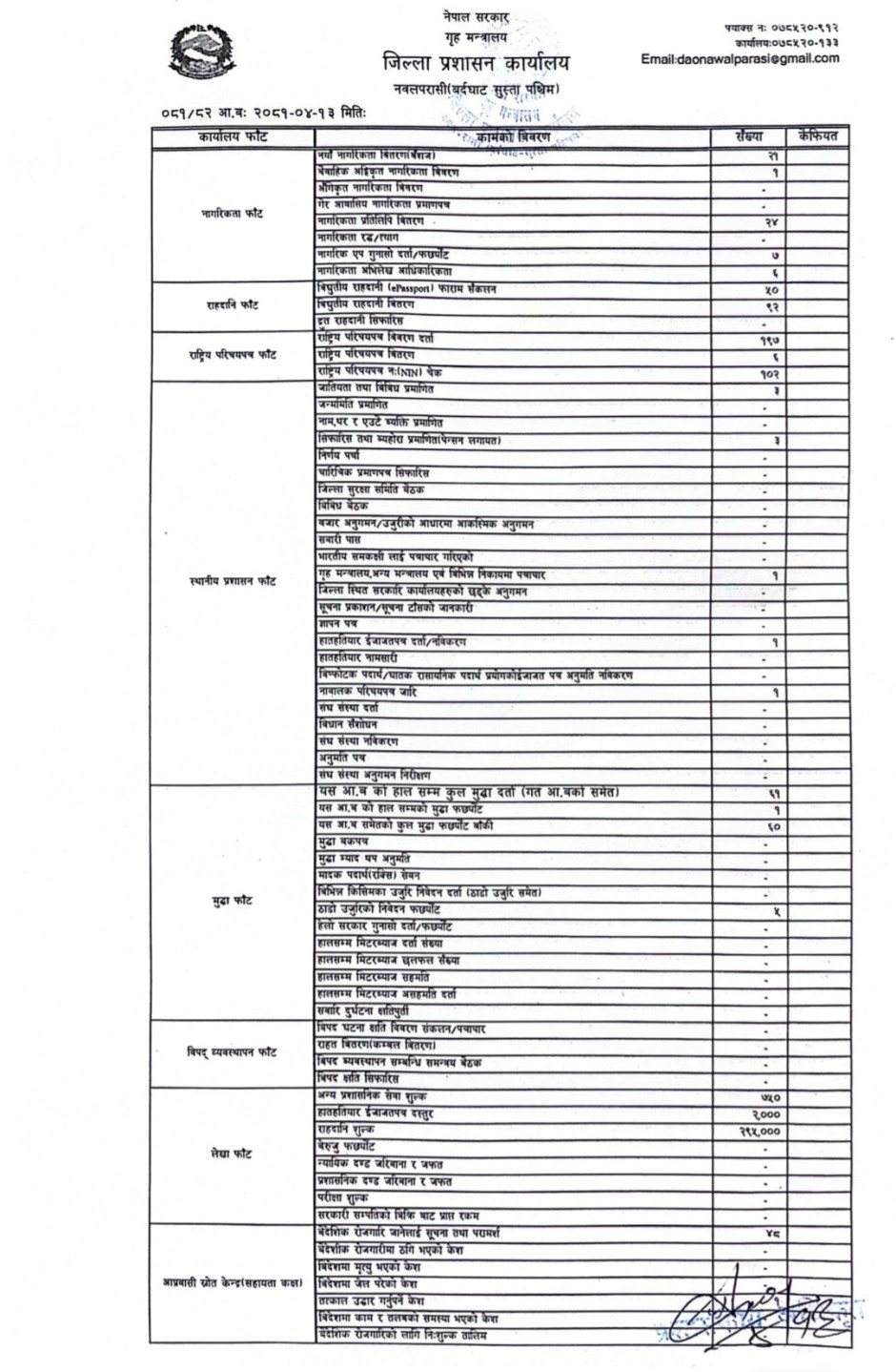 तस्बिर : मिति २०८१।०४।१३ गतेका दिन सम्पादित गरिएका कार्यको संख्यात्मक विवरण