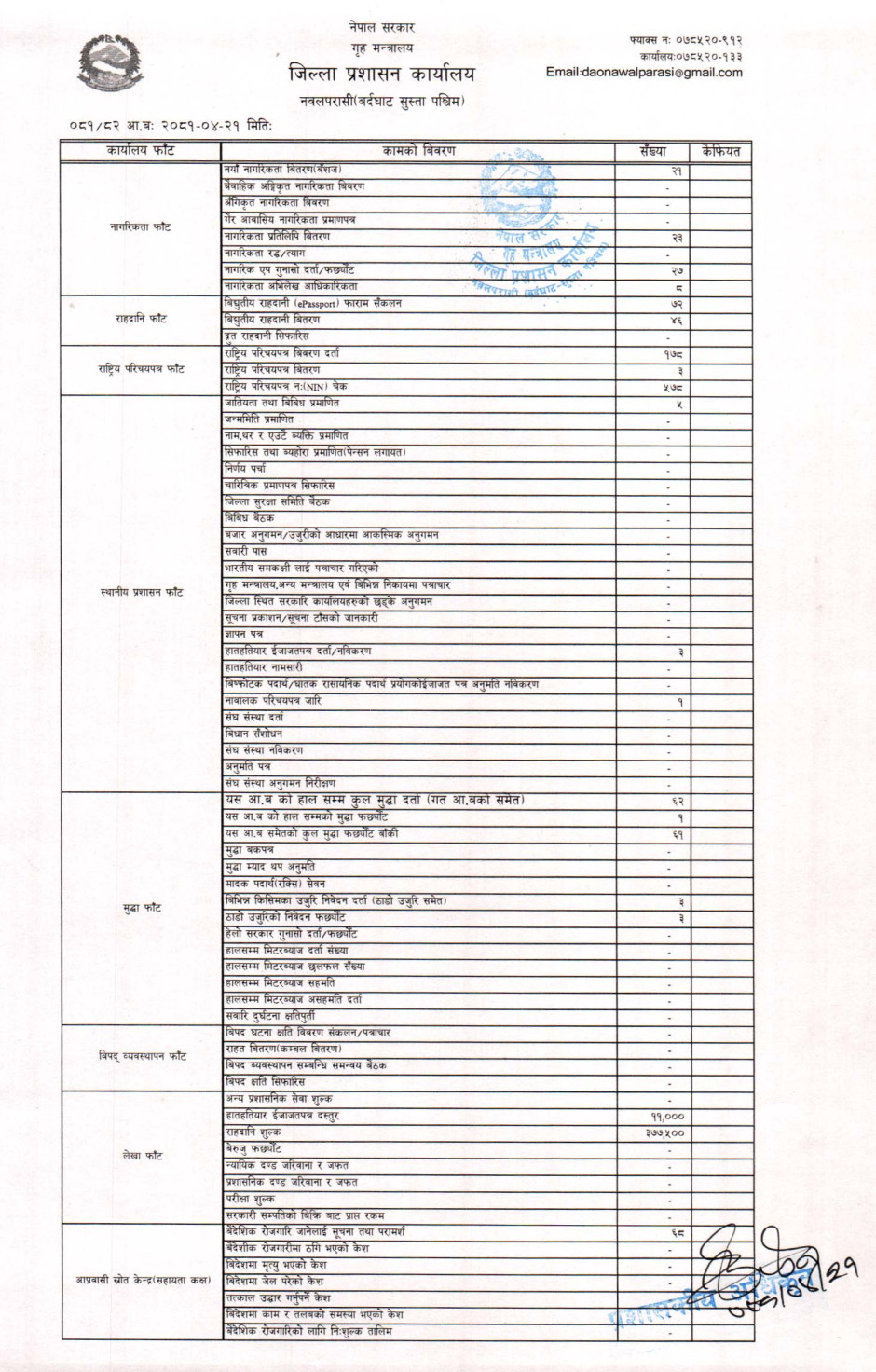 तस्बिर : मिति २०८१।०४।२१ गतेका दिन सम्पादित गरिएका कार्यको संख्यात्मक विवरण