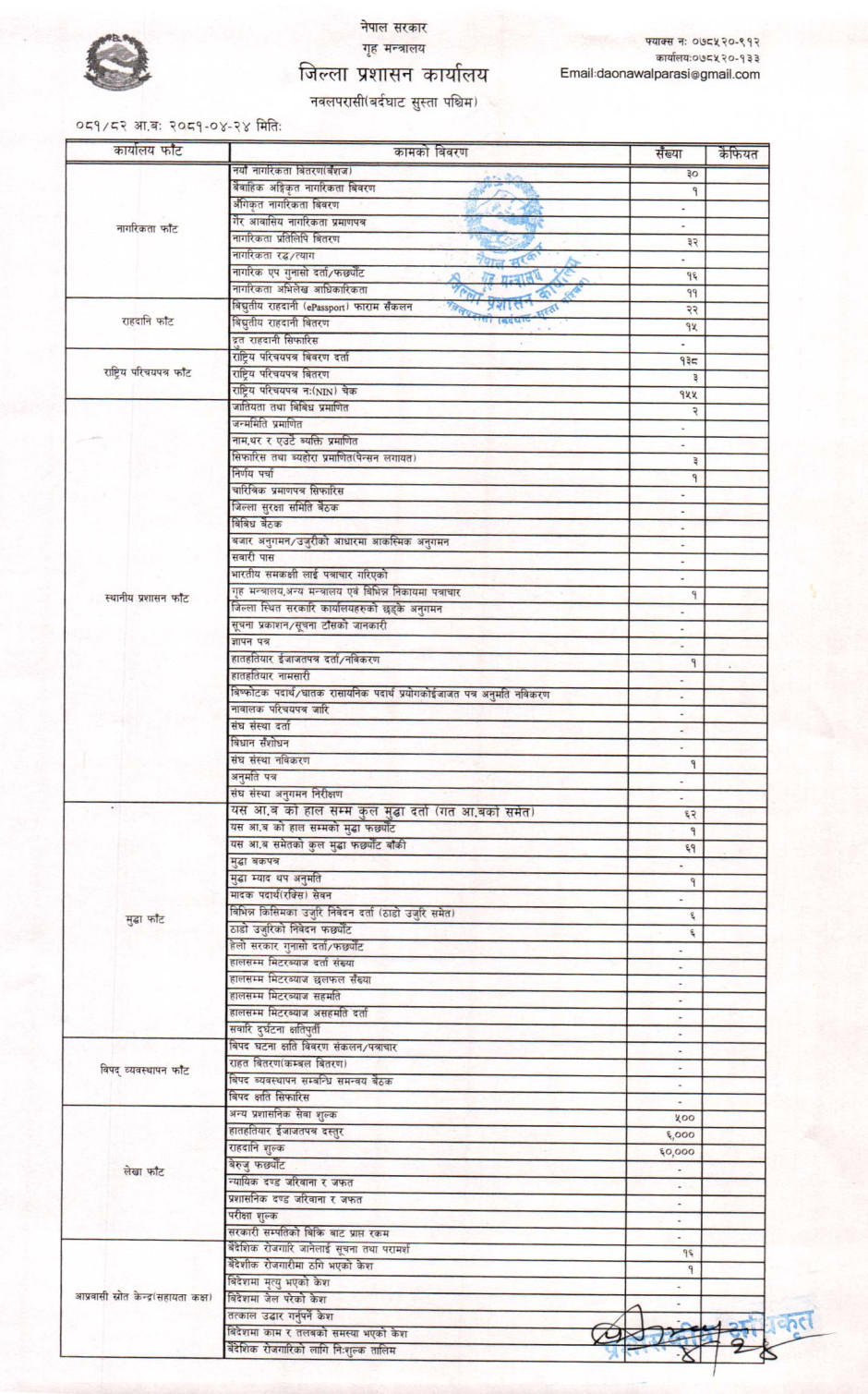 तस्बिर : मिति २०८१।०४।२४ गतेका दिन सम्पादित गरिएका कार्यको संख्यात्मक विवरण