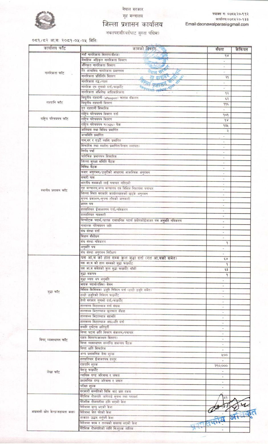 तस्बिर : मिति २०८१।०५।०५ गतेका दिन सम्पादित गरिएका कार्यको संख्यात्मक विवरण