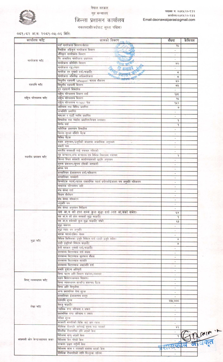 तस्बिर : मिति २०८१।०५।०६ गतेका दिन सम्पादित गरिएका कार्यको संख्यात्मक विवरण