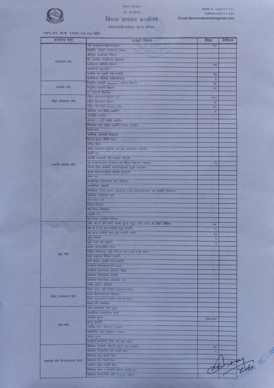 मिति २०८१।०५।०७ गतेका दिन सम्पादित गरिएका कार्यको संख्यात्मक विवरण
