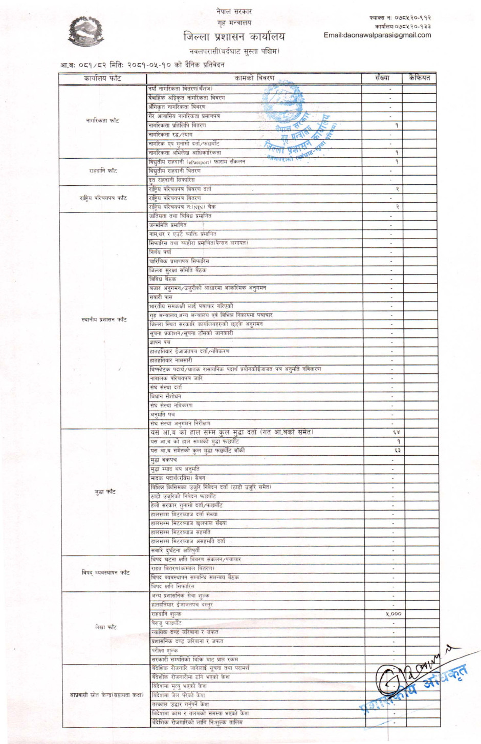 तस्बिर : मिति २०८१।०५।१० गतेका दिन सम्पादित गरिएका कार्यको संख्यात्मक विवरण