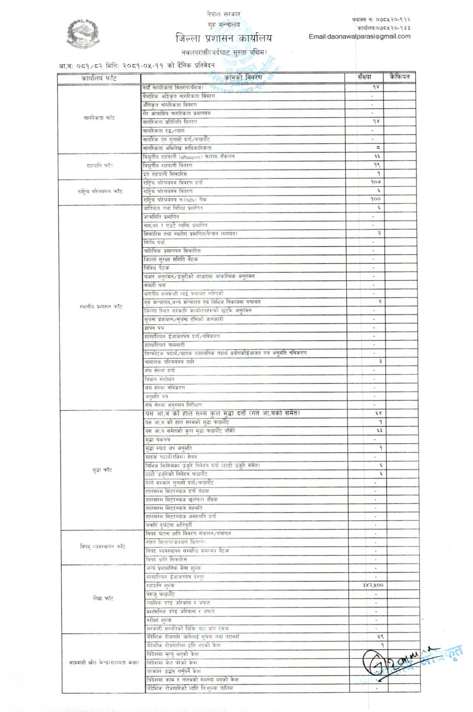 तस्बिर : मिति २०८१।०५।११ गतेका दिन सम्पादित गरिएका कार्यको संख्यात्मक विवरण