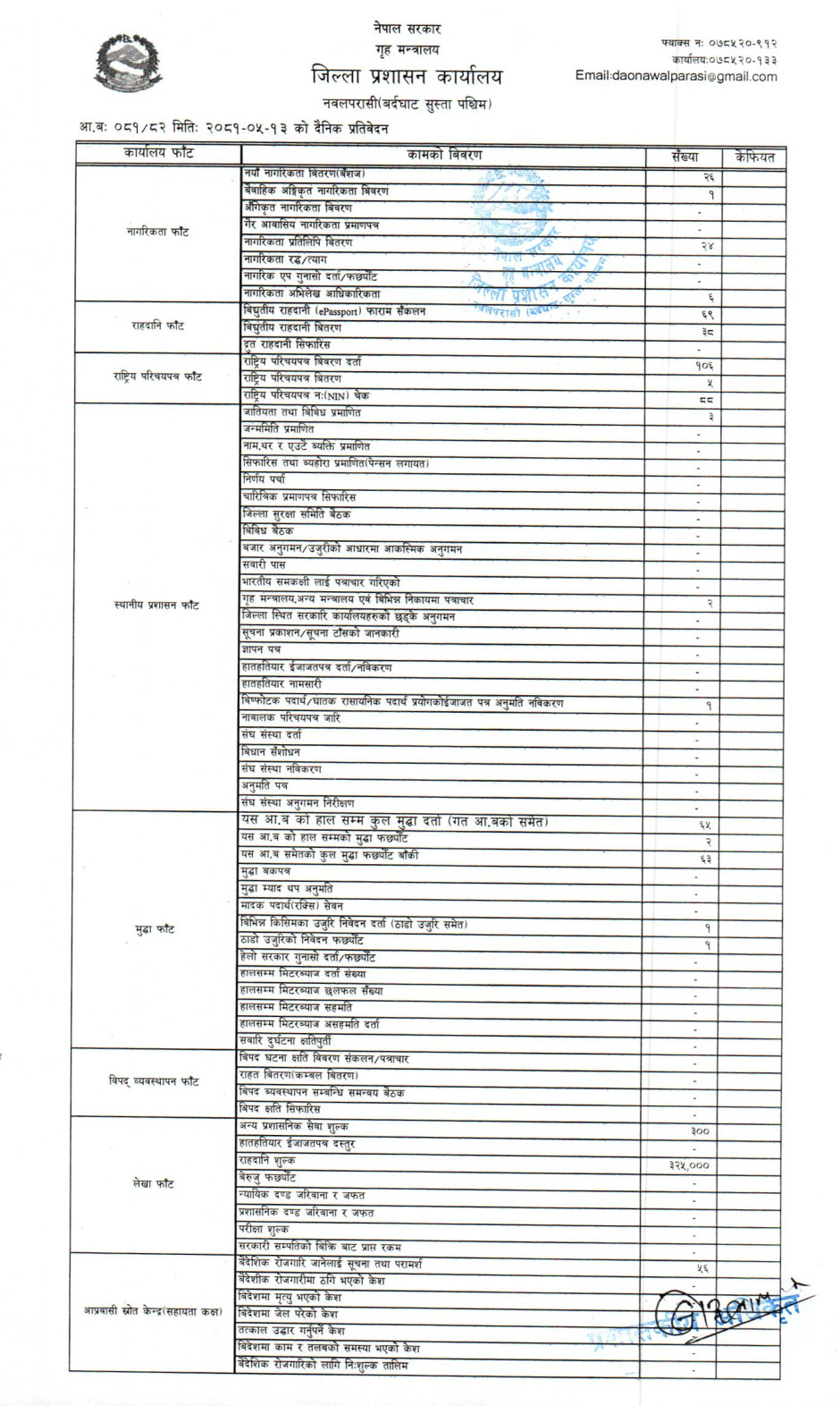 तस्बिर : मिति २०८१।०५।१३ गतेका दिन सम्पादित गरिएका कार्यको संख्यात्मक विवरण