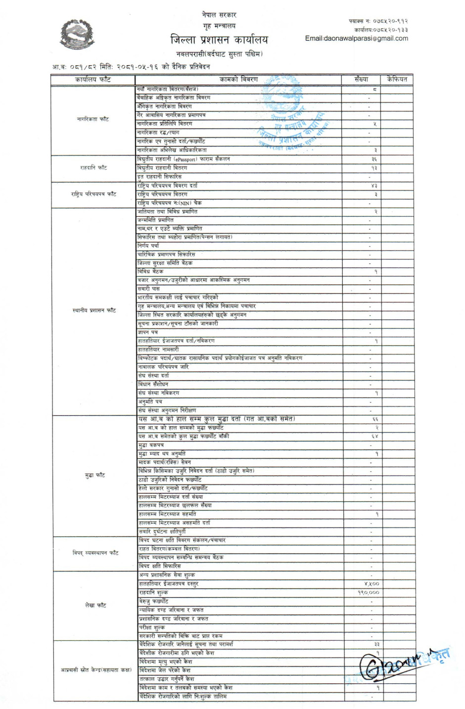 तस्बिर : मिति २०८१।०५।१६ गतेका दिन सम्पादित गरिएका कार्यको संख्यात्मक विवरण