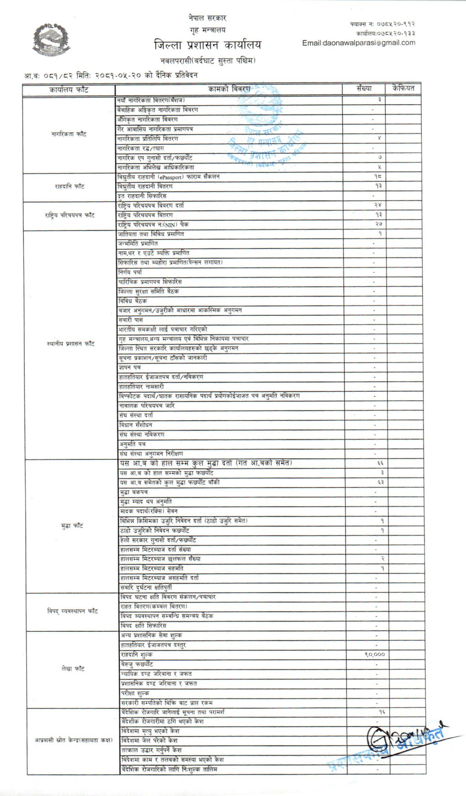 तस्बिर : मिति २०८१।०५।२० गतेका दिन सम्पादित गरिएका कार्यको संख्यात्मक विवरण