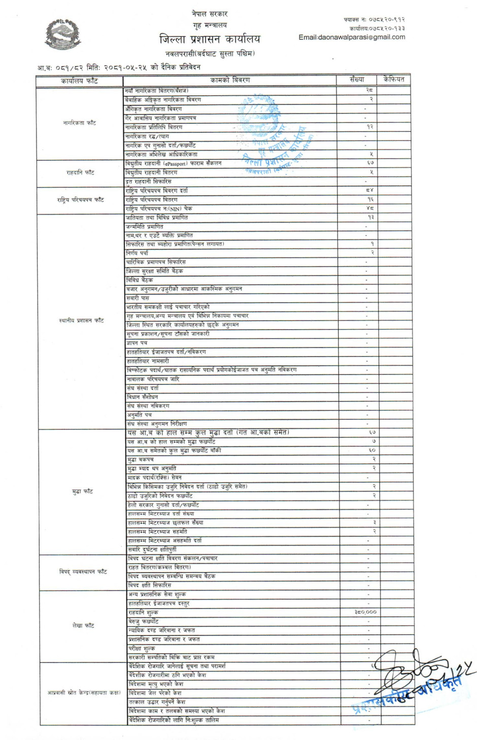 तस्बिर : मिति २०८१।०५।२५ गतेका दिन सम्पादित गरिएका कार्यको संख्यात्मक विवरण