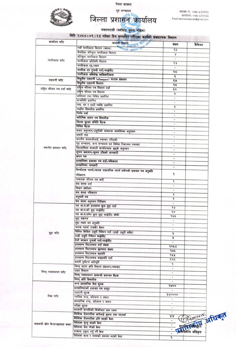 तस्बिर : मिति २०८०।०९।२३ गतेका दिन सम्पादित गरिएका कार्यको संख्यात्मक विवरण