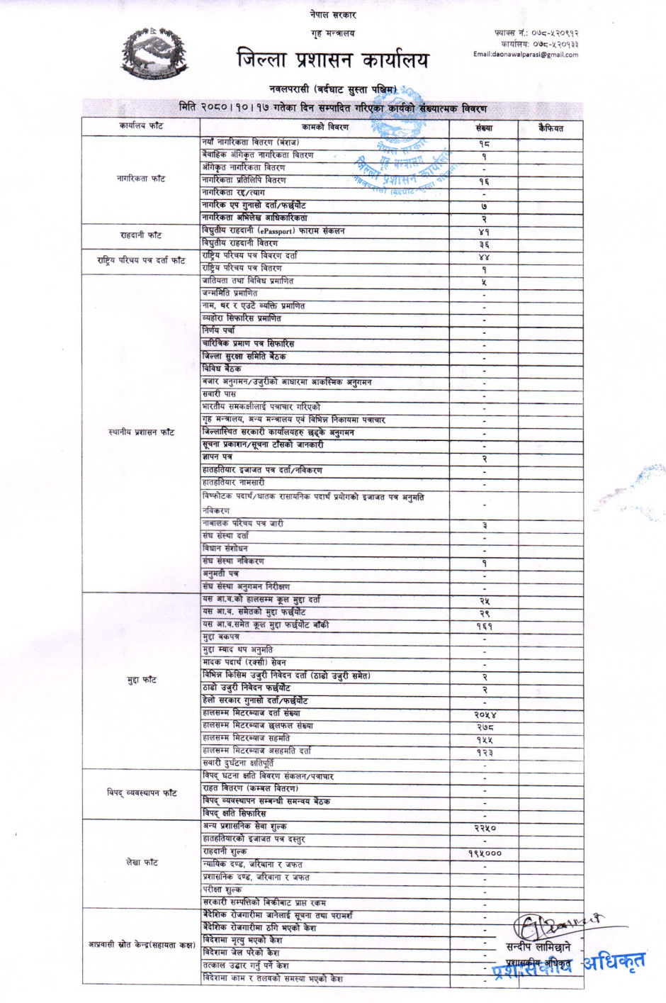 तस्बिर : मिति २०८०।१०।१७ गतेका दिन सम्पादित गरिएका कार्यको संख्यात्मक विवरण