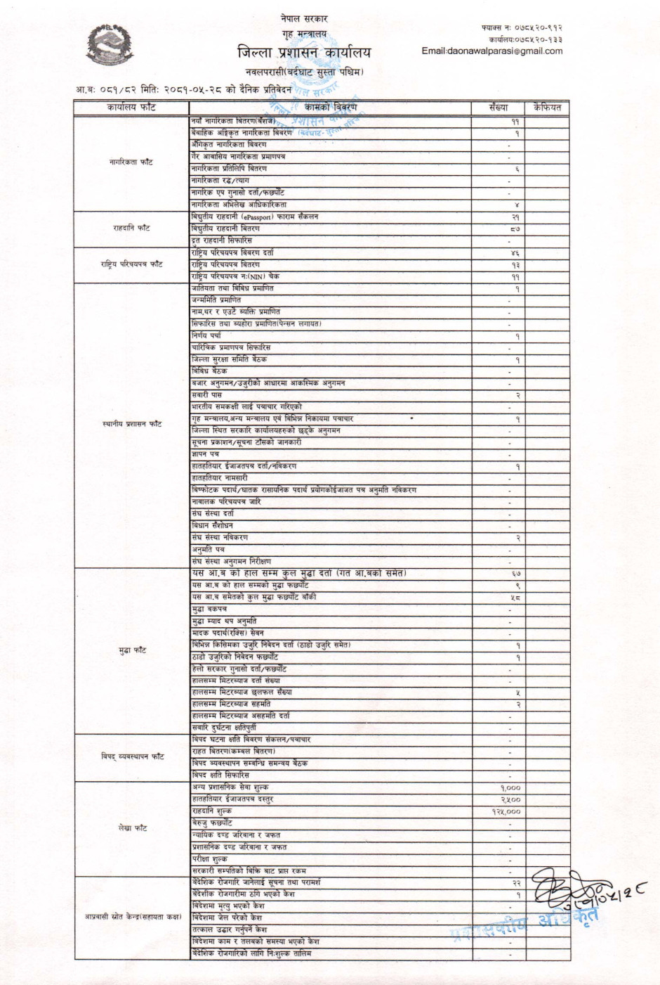 तस्बिर : मिति २०८१।०५।२८ गतेका दिन सम्पादित गरिएका कार्यको संख्यात्मक विवरण